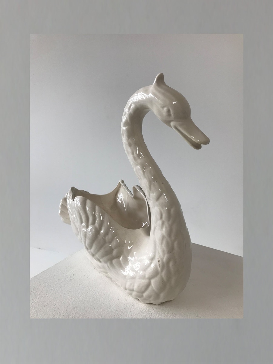 White ceramic swan statuette. Can also be a small vase.